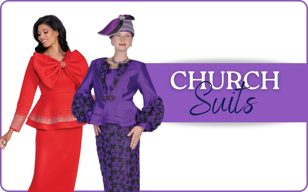 - Tailored Skirt Suits: The quintessential church outfit for many women (especially “Mother of the Church” types and ushers) is a well-tailored skirt suit. These often come as a coordinated set with a matching jacket and skirt (and sometimes a matching hat). High-quality church suits use luxe fabrics like silk brocade, satin, fine wool, or microfiber blends, and they often feature beautiful detailing – think brooch embellishments, rhinestone buttons, or intricate embroidery. Jacket styles vary from structured and boxy to peplum or flared cuts. The skirts are usually knee-length or midi (mid-calf), sometimes with a slight flare or a wrap style. A suit offers a polished, commanding look. Many designer church wear brands specialize in this style – for instance, labels like Donna Vinci, Terramina, Tally Taylor, and Lily & Taylor are famous for their exquisite women’s church suits that come in a “rainbow of joyful colors” and often include a matching hat or scarf . A suit in royal blue with white piping, or a tweed suit in soft pastels, or a sharp white suit for Communion Sunday – these are staples in church fashion.
